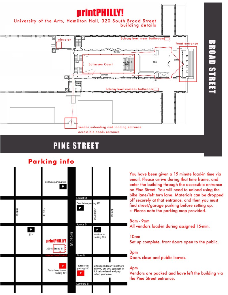 If you have mobility issues or will need extra time to load-in, please notify us as soon as possible so we can accommodate you: phillyprintconsortium@gmail.com.
